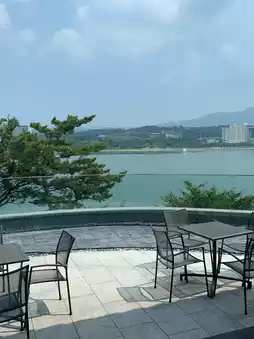 The interior was as pretty as the exterior, with a Hanok feel. As soon as you enter, the lake view through the large windows is really nice❤ The coffee is strong and delicious. A great restaurant with a great view and atmosphere~!👍🏻