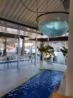 Hanok cafe with flowing water