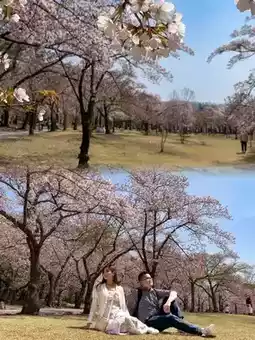 I would say Gyeongju is perfect for a couple's trip in spring. The cherry blossoms are in full bloom, with petals flying everywhere, making the air feel sweet and romantic. Korean couples are all around, setting up their tripods to capture the perfect couple photos. We brought our own tripod too, and they were more than willing to help us take photos whenever we needed. We spent a lovely afternoon relaxing and chilling in the Sakura garden at Bulguksa Temple and by the peaceful Boemun Lake, soaking in the beauty of the season and each other's company. It was a truly magical and romantic experience.