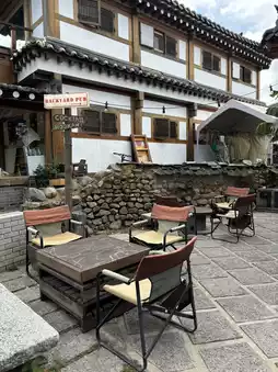 There is Daereungwon right in front, and the store itself has a Hanok-style interior,