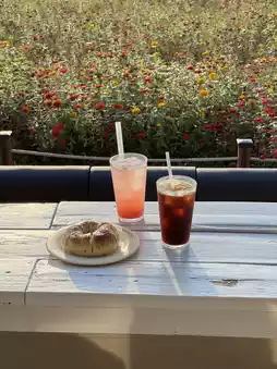 It's still hot during the day on the outdoor terrace, so it's good to go when the sun is setting. This zinnia colony is also open for free, so you can take pictures of the flowers! Be sure to have a bagel at the cafe terrace😀