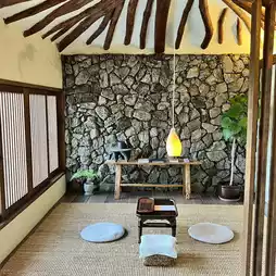 it is full of healing elements such as a jacuzzi, tea ceremony, and a fire pit 🥹🥹