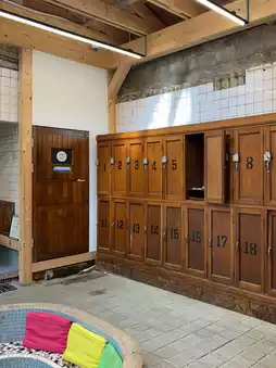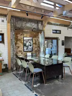 The exterior of the cafe retains the chimney of the bathhouse, providing a unique photo spot. The idea of remodeling a bathhouse building into a cafe is refreshing, creating a space where the past and present blend well. The cafe also operates various exhibition contents, offering a cultural experience. The atmosphere of the cafe is calm and unique, making it a great place to visit with friends or a partner.