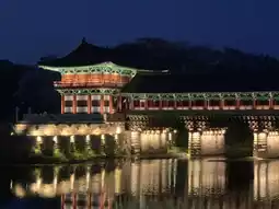 Our visit to Woljeonggyo Bridge in Gyeongju during a beautiful spring night left us with memories we will cherish forever. The fully bloomed cherry blossoms surrounded the bridge, their delicate pink petals glowing softly under the night lights. The elegant structure of the reconstructed Silla-era bridge reflected perfectly in the calm waters below, creating a dreamlike scene. Walking along the bridge, we felt immersed in the beauty and history of Gyeongju, with the sweet scent of sakura carried by the gentle breeze. It was a magical moment that combined nature’s splendor with architectural grace, leaving us with fond memories of this historic city.