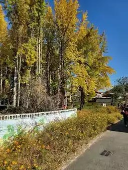 you can enjoy the beautiful harmony of a village full of yellow cosmos and ginkgo trees.