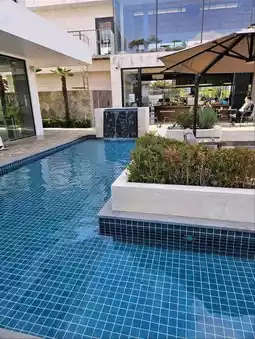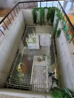 It is divided into three buildings, and the first basement floor is a no-kids zone. The outdoor waterfall and garden are amazing. It's pretty... The mascot here, Golden Rietberg, is as big as me... The coffee and Mont Blanc are delicious.