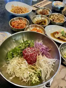A lot of side dishes were served, and the Korean beef tartare bibimbap was more plentiful than expected. Personally, it was fresh and delicious.