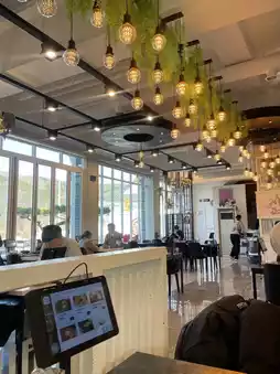 The interior of the restaurant is spacious and clean, with a variety of seating options ranging from tables for four to group seating.