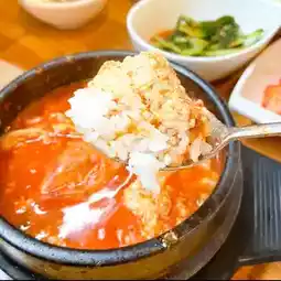 The spicy and rich broth of the tofu stew and the fluffy tofu