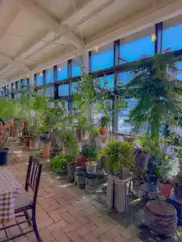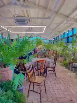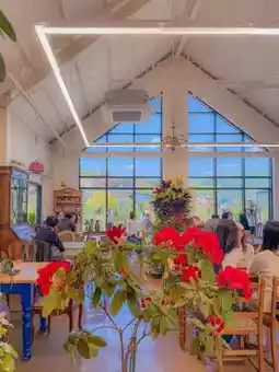 The parking lot is large, and since it is a large cafe, there are many seats in the main building, annex, and outdoor seating,
