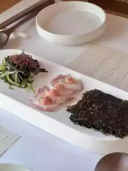 This is an all-inclusive stay, featuring breakfast, dinner, three beverages, private spa access, and rentals of a Polaroid camera and Bluetooth speaker, providing a unique experience. The spa operates on a reservation basis, offering a serene retreat with views of the surrounding forest. Meals are served as a course menu using local specialties, including dishes like octopus sashimi, shrimp avocado salad, Korean beef bulgogi rice bowl, and panna cotta.