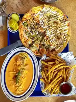 I ordered half-and-half pizza (taco bulgogi + garlic bacon), spicy cream pasta, and French fries, and it was just my taste 😋🍕🍝