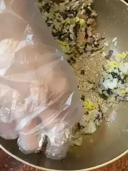 Spam, pickled radish, Korean seaweed, and mayonnaise mixed together and rolled into bite-sized rice balls. Simple yet tasty!