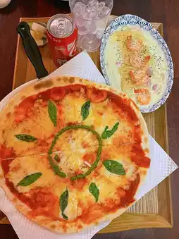 I ordered the Margherita pizza and cream pasta!