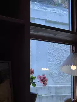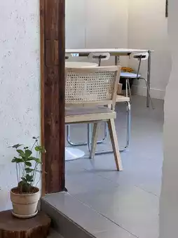 From the entrance, you're greeted by beautiful flowers and a wooden sign 🌸. As you pass through the small garden, you'll find a cozy interior waiting for you. Sitting by the window where sunlight gently streams in is pure relaxation 🌞💛. It's the perfect spot to read a book alone or have a heartfelt conversation with your partner 📖👫.