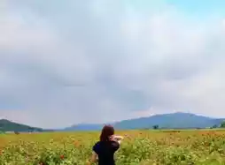 A photo spot with a frame that looks like a Polaroid film appears. It's an ordinary countryside landscape, but it looks strangely pretty, right? Now, the scenery has become even prettier with the sunflower field.