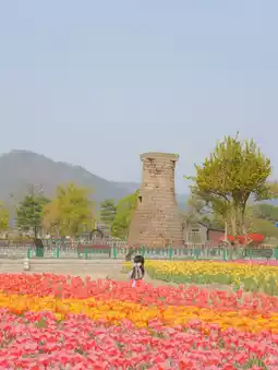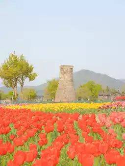 The tulips that are in full bloom as if embracing Cheomseongdae are a unique sight that can only be seen in Gyeongju and nowhere else, so if you come to Gyeongju to see double cherry blossoms, you should definitely stop by Cheomseongdae and see the tulips❤️
