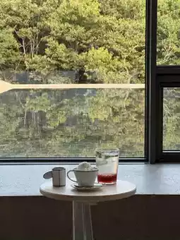 This cafe near Bulguksa Temple in Gyeongju is a truly stunning space, and the lush greenery reflected in the water is a beautiful sight!