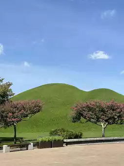 Daereungwon, with its lush greenery and the stunning combination of pink crepe myrtle trees, was absolutely breathtaking. It was my first proper summer visit to Gyeongju, and I never imagined the pink waves of crepe myrtle trees could be this beautiful. The harmony of the vibrant green mounds and the flowers was so picturesque that just strolling around felt delightful, and taking photos made it even more magical!