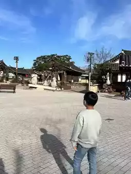 As we walked along the street, we found many picturesque photo spots. Under the tiled roofs of traditional houses, in front of murals, we took photos together, laughing all the way. My child even said, "I want to come back here again!" showing how much they enjoyed the experience.