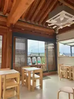 and the duplex design allows you to enjoy the view of the hanok's tiled roof from the second floor, adding to the charm.