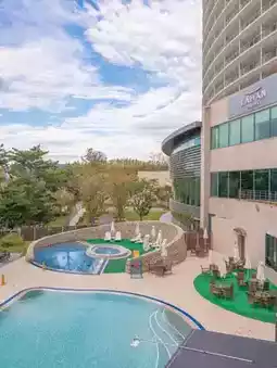 - Indoor/outdoor swimming pool, bowling alley, gym, breakfast, book cafe