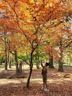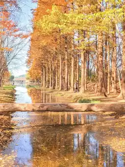 #MillenniumForestGarden, famous for its single-log bridge photo zone 🍁