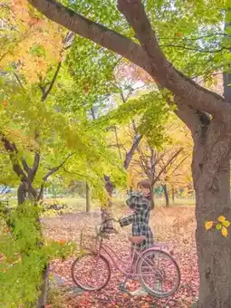 Someone brought a pretty pink bicycle, which made the fall photos even more beautiful and emotional✨