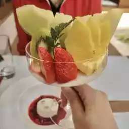 [the salad] was avocado puree with pan-grilled shrimp and a vegetable salad with mushrooms.
