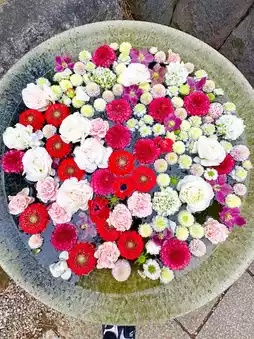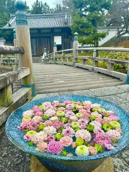 Flower water basins are displayed all over the city, and it's very beautiful!