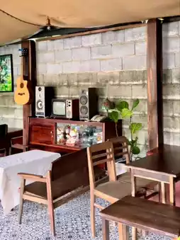 Tiệm Cà Phê Ú Paó is a cafe that perfectly combines modernity with local culture. The shop is a tribal-style wooden house with a bamboo roof, offering a 360-degree view of the stacked mountains and the sea of fog in the morning.
