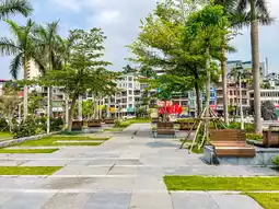 The area is adorned with Vietnam's characteristic tall and colorful buildings, creating a harmonious and picturesque setting that appeals to photography enthusiasts. Visiting on a clear day is especially recommended for capturing beautiful photos, though the heat can be a challenge. For a more comfortable experience, visiting during the cooler evening hours is highly suggested.