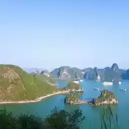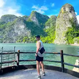 Halong Bay, a World Heritage Site in Vietnam, is a beautiful and unique destination with thousands of limestone islands. Tourists often take cruises or local wooden boats to explore the unique rock formations and caves. Popular activities include kayaking or climbing to the island's observation deck for panoramic views of the bay. The atmosphere is incredibly romantic. It's easily accessible from Hanoi, just 3–4 hours away. We booked a tour from Hanoi to get there.