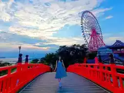 Nighttime beauty: The Ferris wheel lights up at night, creating a dazzling atmosphere.