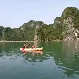 👉 Kayaking through Halong Bay is a must-do bucket list activity and by far the best way to explore all that the bay has to offer. These tours are offered by most Halong Bay cruises. Our cruise took all tourists to Tung Sau Area for kayaking trip which is a not-to-miss experience, we all had joyful moments paddling among beautiful rock formations and karst cliffs. Moreover, we stopped at Tung Sau Pearl Farm to watch and learn about the pearl growing and making process.