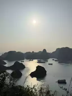 Halong Bay is a world natural heritage site in Vietnam🌟, famous for its magnificent limestone islands and turquoise waters⛰️🌊. Taking a cruise ship to travel between the islands is like entering a mysterious wonderland✨. You can explore the famous Surprise Cave and experience the magical beauty of stalactites, or kayak through the tranquil waters to appreciate the wonders of nature up close. In the evening, the setting sun shines on the sea🌅, and the entire Halong Bay is dyed golden, so romantic that it is breathtaking💖. Whether it's a family trip or a couple's vacation, Halong Bay can leave you with unforgettable memories😍! Remember to bring your camera to capture this beautiful moment📸!