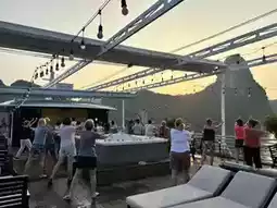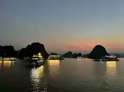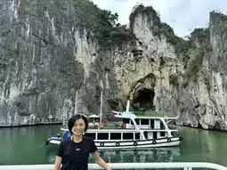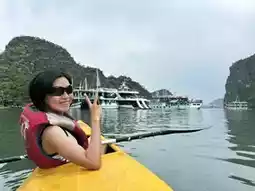 At 5:20 in the morning, I sat on the balcony chair to welcome the sunrise over Halong Bay. It was still a warm orange when it rose slowly. Less than half an hour later, the sky gradually brightened. The sound of the motor of the local residents' boats broke the silence, shuttling between the cruise ships to sell snacks and drinks. After breakfast, we took a shuttle boat to Ti-top Island. Today we will go to Bai Tu Long Bay for a full day of exploration, including kayaking through sea caves, swimming on the mysterious beach, visiting the pearl farm and ME CUNG stalactite cave; the kayaking itinerary can get close to every island, and you can also cross the natural sea caves to test your control skills. Immersed in the world heritage and natural beauty, my wife and I began to recite poems...
