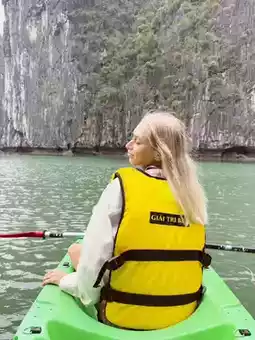 The itinerary was perfectly planned: we started by exploring a mystical cave with stunning stalactites 🪨, then hiked to a panoramic viewpoint with jaw-dropping views over the emerald waters and limestone cliffs 😍. After that, we went kayaking through quiet passages between towering rocks — just us, the still water, and the sky reflected around us 🌅🛶