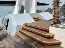 I'm Japanese, but I decided to join an English tour. There was a schedule carefully written in Japanese at my seat on the boat! There was also a Japanese flag, and the moment the staff arrived, they greeted me in Japanese with a "hello!"—the hospitality was truly impressive. Announcements and staff conversations were in English, so it might be a bit of a challenge for those who don't speak it at all, but the comfort more than made up for it. The boat was luxurious and clean, the food was buffet-style, and everything was delicious, and the staff were incredibly attentive. If you get tired, you can skip the activities and just relax on deck. It was truly the best, relaxing cruise, enjoyable for everyone, from young to old.