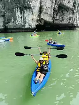 Ha Long Bay in Northeast Vietnam. It is a UNESCO World Heritage Site that covers some 150,000 hectares. It is located on the Gulf of Tonkin in the north eastern province of Quang Ninh. It is known for its emerald waters and The most amazing thing about the bay is the islets that rise up out of the water. If you are going to Ha long bay there are some options to choose. Visitors to Ha Long Bay can opt for a packaged cruise, including transport to and from Hanoi. Independent travellers can take a bus to Ha Long City or Hai Phong and a taxi to the port. When I went there I chose the packaged cruise. The Halong Bay entrance fee is US$13 per person for a day cruise and US$25 for an overnight cruise. This is generally included in your ticket, though it's worth double-checking for the cheapest cruises. Activities like kayaking and island bike rides may cost you extra. This is absolutely beautiful. If possible you can try to do overnight to see the sunrise and sunset.