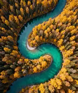 - The emerald river here forms a graceful S-shaped curve, passing through the golden forest, making it the most classic photo spot in Kanas.