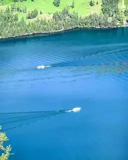 📸 Hidden photo spot: the big rock at the end of the wooden boardwalk (lake color changes with the light🌊)