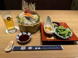 In the evening, we enjoyed the famous squid and rare local sake at Miroku Yokocho.