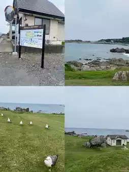 🌊 Walk across the lawn, and you can get up close and personal with the Pacific Ocean. It's a completely different feeling from viewing the sea from an observation deck. Standing on the rocks, you can touch the seawater by squatting down. Many tourists sit quietly on the rocks near the sea, enjoying the sea breeze, listening to the waves, and gently swaying their hands in the seawater. Who can understand that refreshing feeling? This sea is so clean that there's not a trace of impurity. The rocks are covered with small shells, and black-tailed gulls rest on the rocks in the distance, creating a particularly healing scene.