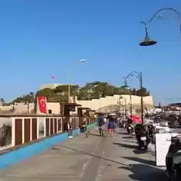 Charming weather, blue sky and white clouds. After getting off the boat, you can walk for 10 minutes to a large shopping mall. Many shops sell leather jackets, carpets and Turkish lamps, etc. There is a market to visit