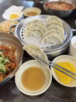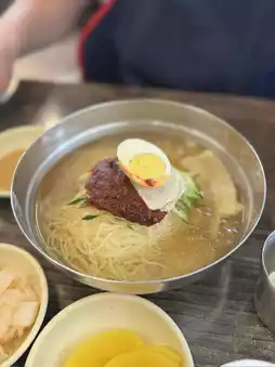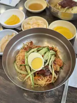 and serves cold wheat noodles "milmyeon" and "bibimmyeon" with sweet and spicy sauce.