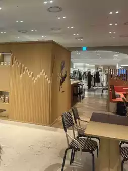 Like a brand that originated in Paris, the interior exudes a French vibe, blending sophisticated minimalism with warm wood tones. ✨