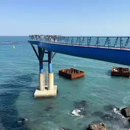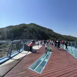I took a train from Cheongsapo to Mipo. Cheongsapo is a small seaside town. I had donuts at a place called Alice Donut. From Cheongsapo station I walked to the observatory deck which takes about 10 minutes. You will have to wear shoe coverings which is provided for you at the entrance.