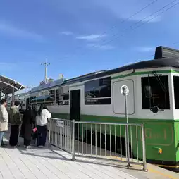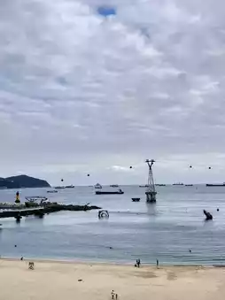 I decided to take the Blue Line from the Songjeong station. The train moves very slowly, passing along the coast. There is a promenade right next to the tracks, where you can see people walking up close.