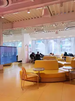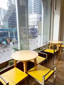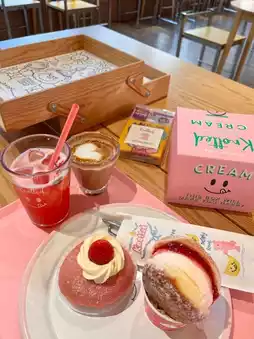 A space decorated with a bright and cute interior. There are tables and a photo zone, so it's great to enjoy leisurely time with donuts in the store. The first floor is for ordering and a photo zone, and the 2nd and 3rd floors have many cute yellow and pink seats. When the weather is nice, the rooftop is also open.